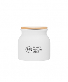 16.9 oz stoneware: matte white out / glossy white in with push-on bamboo lid; Hand wash recommended; Microwave safe with non-metallic imprint; 4 3/16 h x 4 3/16 (w/handle) w ; 500mL.