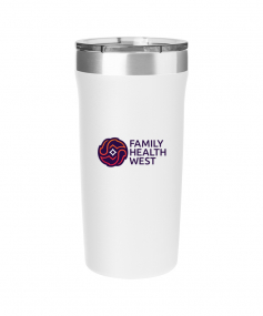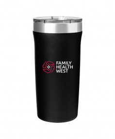 18 oz double wall 18/8 stainless steel thermal tumbler with vacuum insulation, brushed stainless steel rim, clear push-on acrylic lid with sliding closure, and powder coated finish. Hand wash recommended. Do not microwave. Complies with FDA, Prop 65. 7.25" H x 3.5" W