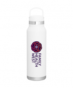 25 oz double wall 18/8 stainless steel thermal bottle with copper vacuum insulation, threaded insulated lid with carrying handle, high polish accent, stainless steel base, and powder coated finish. Hand wash recommended; Do not microwave. Dimensions: 10 H x 3".
