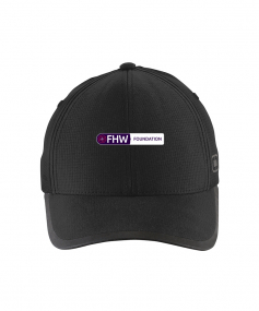 Fabric is 100% polyester pinhole woven mesh with structured profile, mid features, black reflective O heat transfer on side panel black reflective welding on bill, and OGIO seam taping. Low-profile hook and loop with black reflective stacked O heat transfers.