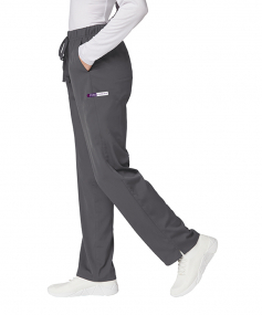These pants feature 78/20/2 poly/rayon/spandex full drawstring and elastic waistband, front slash pockets, right side cargo pocket with interior pocket, back yoke back pockets, straight leg wonderwink heat transfer logo at front left pocket and modern fit 31-inch inseam.